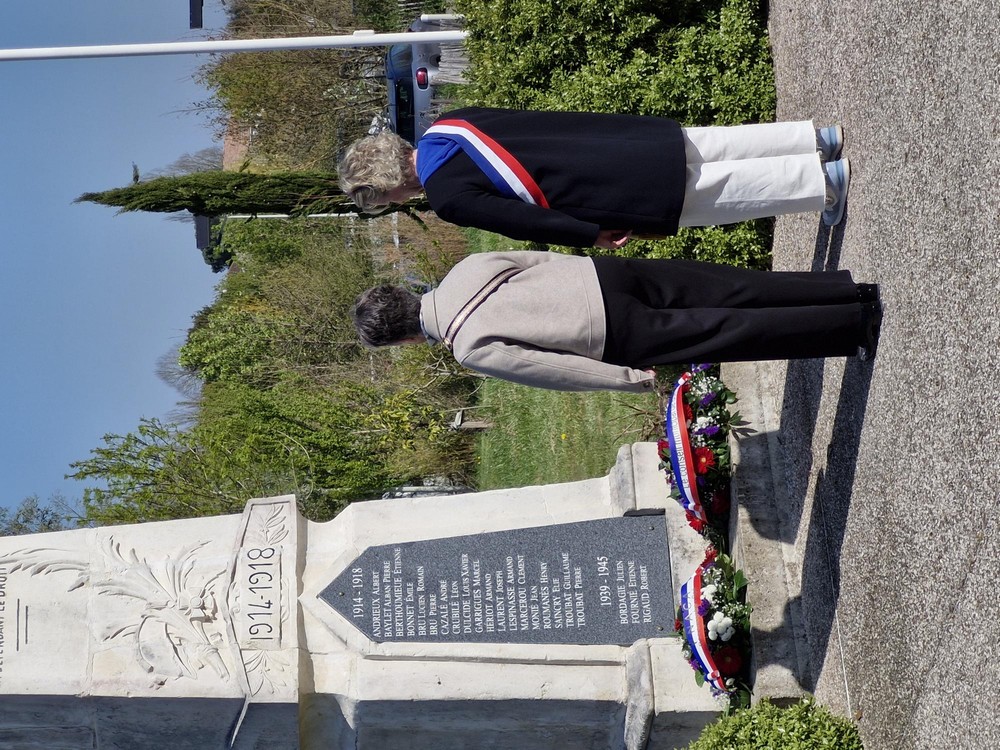 Madame le Maire, Pascale LUGUET et la présidente de la FNACA, madame MEILLER, ont déposé une gerbe devant le monument aux morts de Boé village.