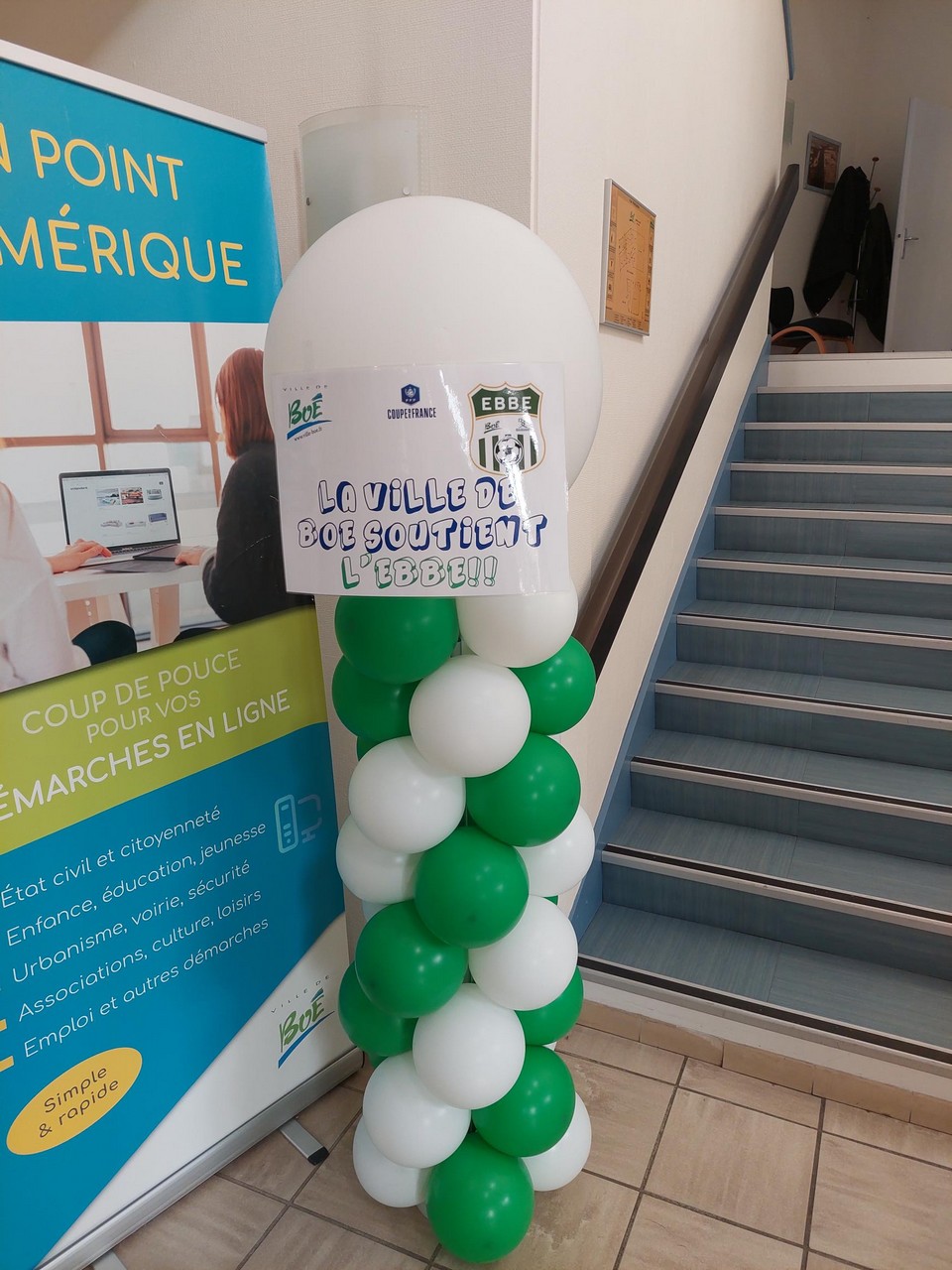 La Ville de Boé félicite le club pour ce parcours exceptionnel en Coupe de France et affiche son soutien à l'entrée de la mairie.