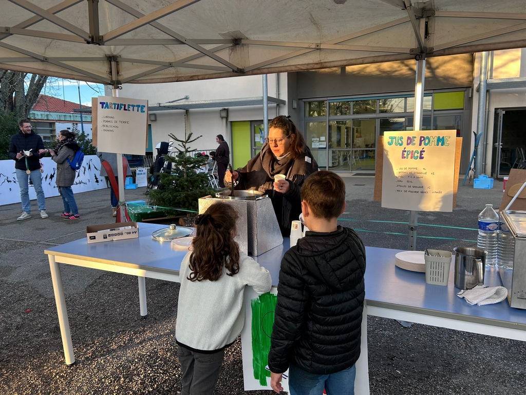En parallèle, des stands sur le thème de la montagne ont complété ces soirées festives. Les visiteurs ont pu déguster une soupe chaude ainsi que des bols de raclette, préparés par les enfants avec l’accompagnement des cuisiniers du restaurant scolaire, mettant à l’honneur le travail collectif et la découverte culinaire.