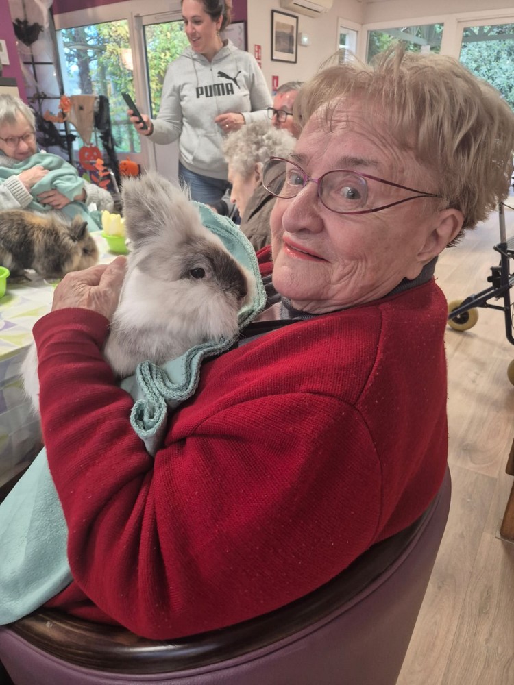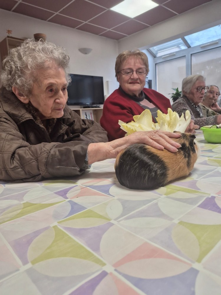 Les résidents ont eu la joie de partager un moment autour d’un rendez-vous très attendu : la médiation animale.
