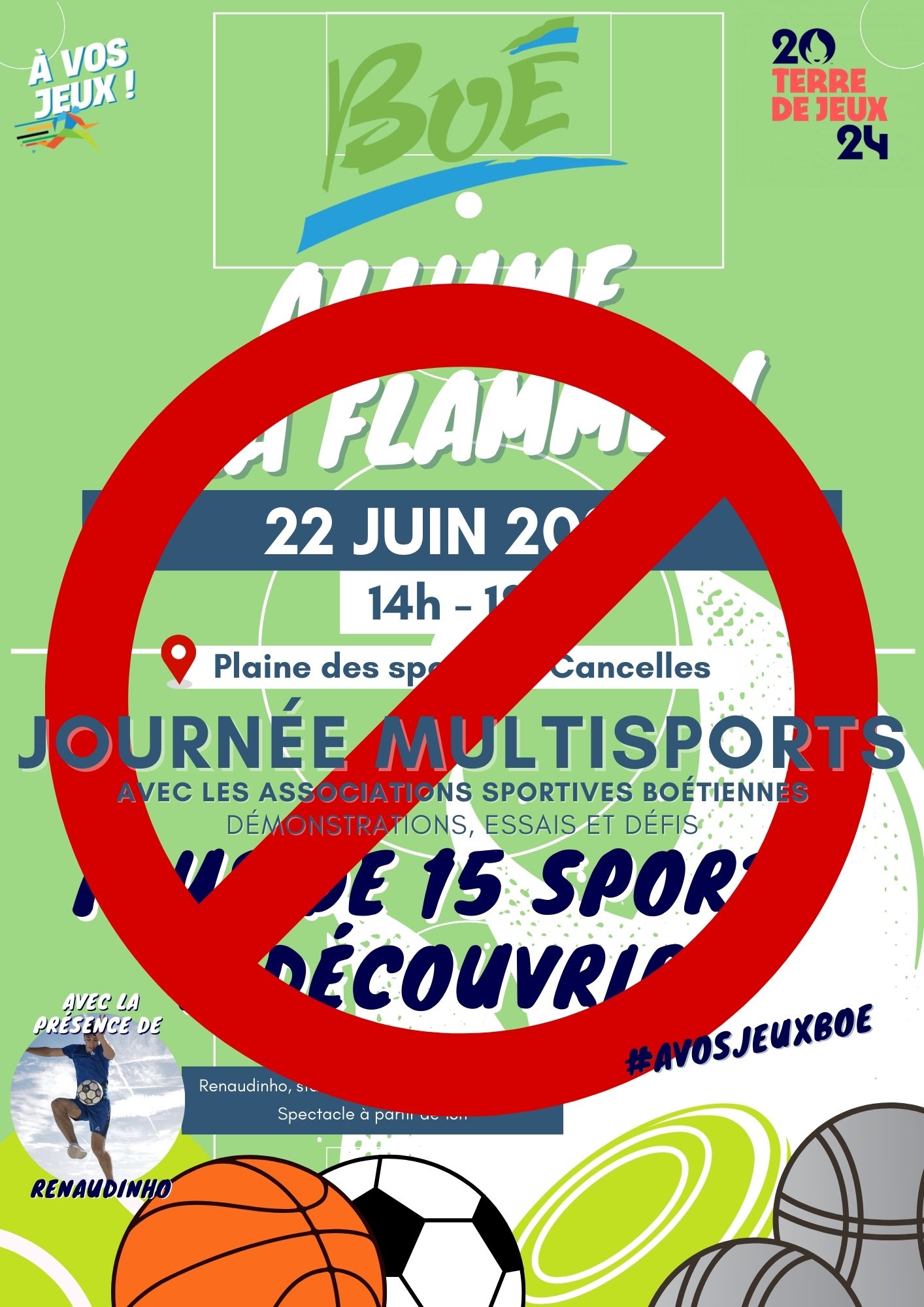Les animations sportives de l'après-midi et le feu d'artifice sont annulés.