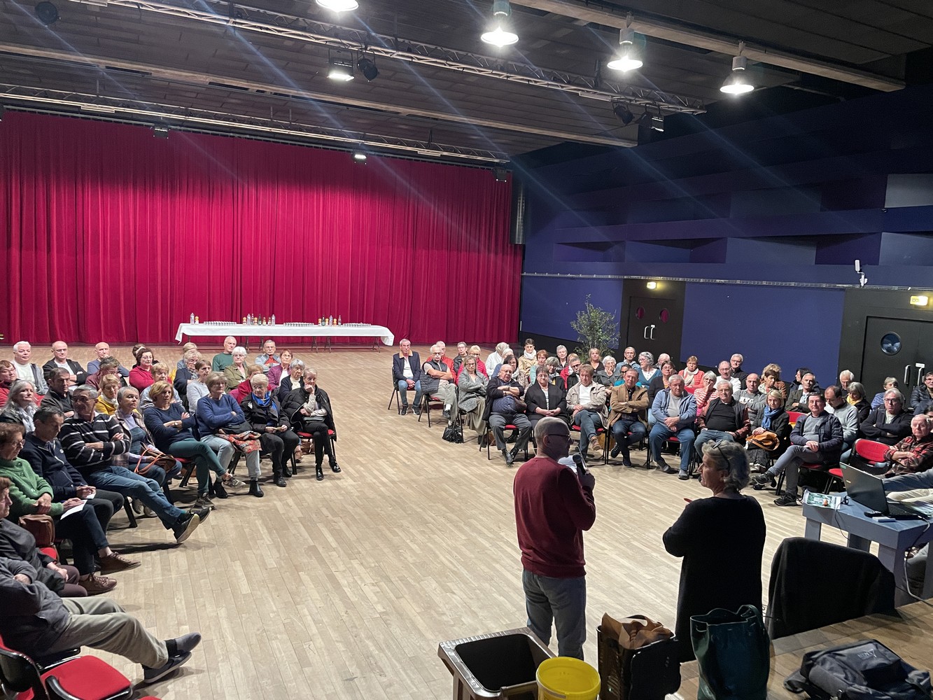 Plus de 160 personnes étaient présentes pour écouter la présentation faite par monsieur Patrick BUISSON (vice-président de l'Agglo en charge de l'environnement et de l'économie circulaire) et monsieur Eric PIQUET (Responsable du service de la collecte des déchets à l'Agglo).