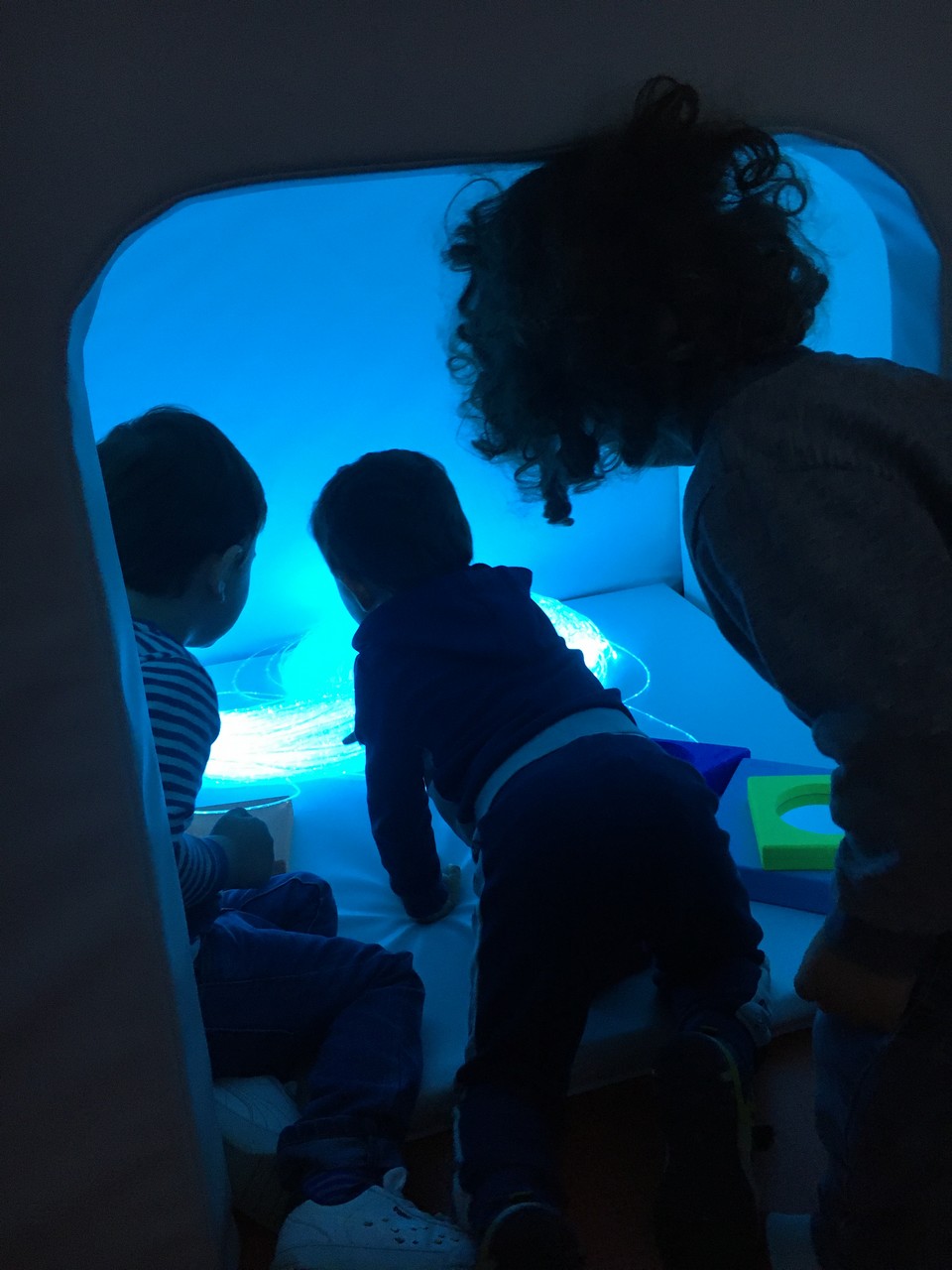 Ces petits temps (séances de 20 minutes), propices à l'exploration sensorielle, ont été proposés dans un espace dédié, avec du matériel adapté.