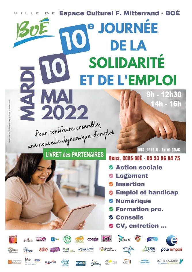La 10e édition de la Journée de la solidarité et de l’emploi témoigne de l’attachement de la commune de Boé à combattre la précarité et à organiser la solidarité envers la population, convaincue que le retour à l’emploi, bien que semé d’embuches, reste le meilleur outil d’intégration économique et social. La large mobilisation des acteurs locaux qu’ils soient issus du monde associatif ou de l’environnement institutionnel, qu’ils interviennent dans le domaine économique ou le domaine social, exprime l’intérêt que nous portons aux autres et à leur bien-être.