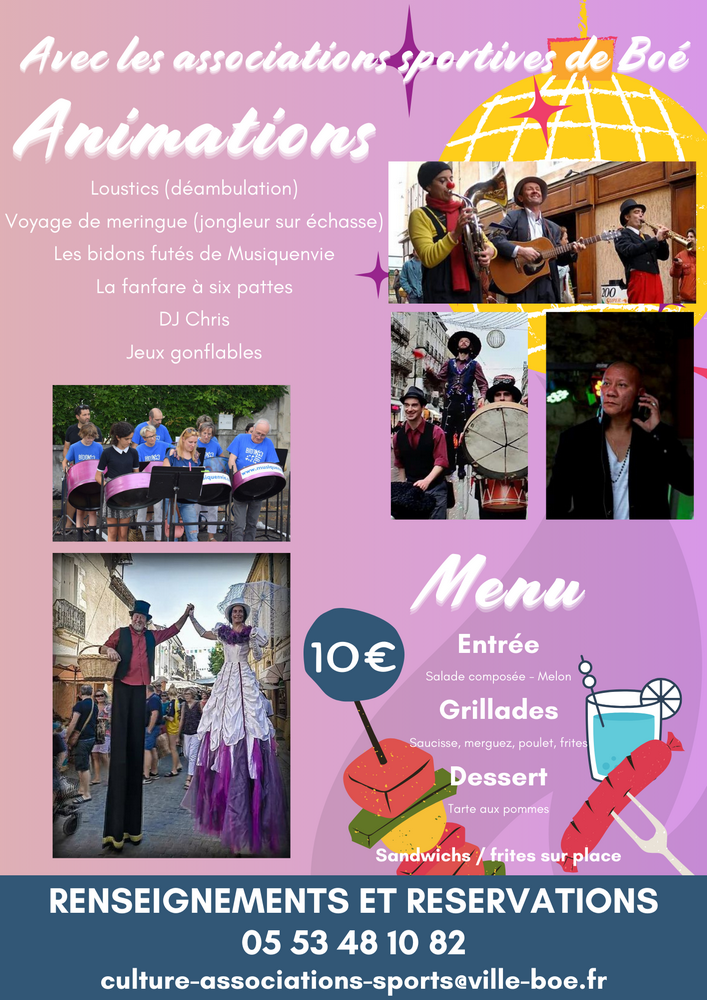 Réservations au 05 53 48 10 82 et culture-associations-sports@ville-boe.fr